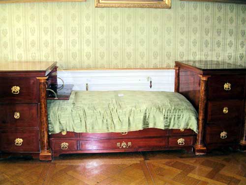 ... before retiring to bed - this is a travelling bed modelled on the type used by captains in the British Royal Navy